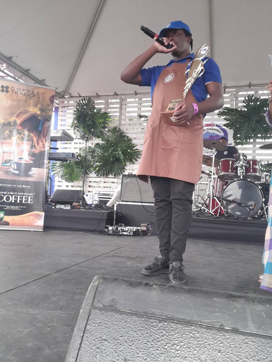 The winner of the barista competition, Romel Bailey of Café Blue, addressing the audience after dethroning last year’s winner Ricardo Jackson, also of Café Blue.