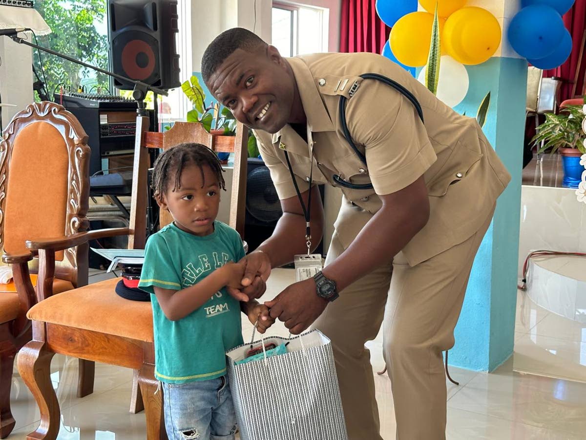 While at the function, Beckford assisted by helping to hand out gifts to several students whom the committee had targetted for assistance.