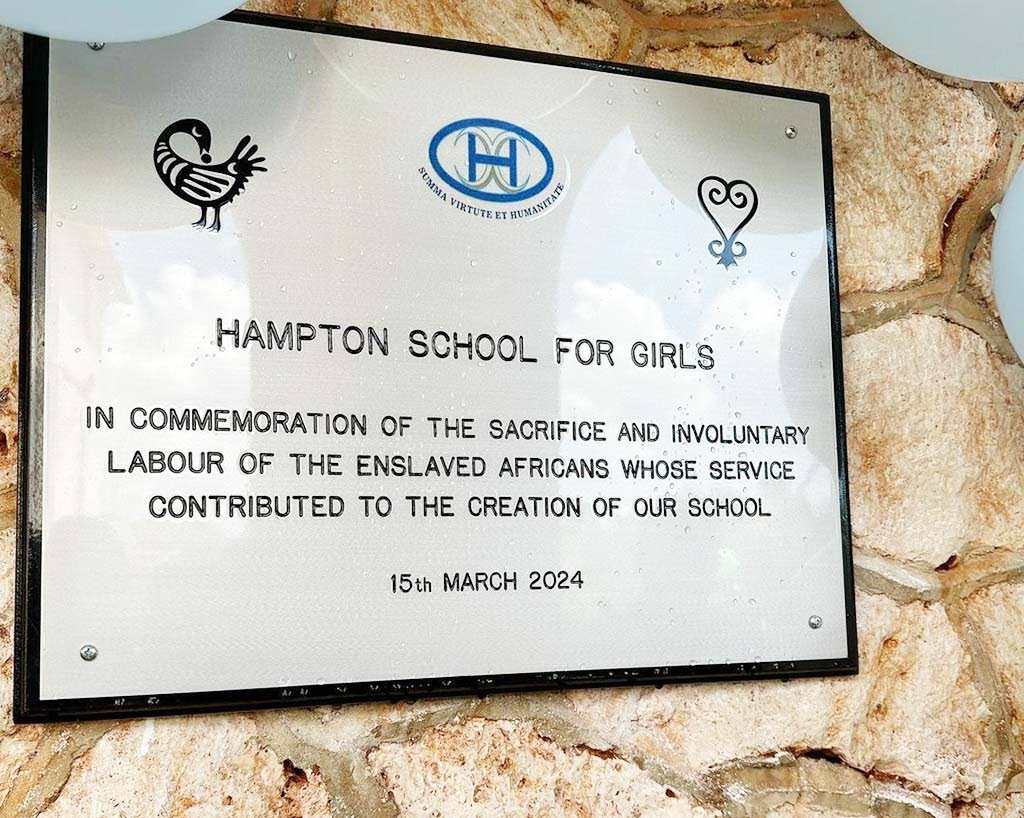 The plaque serves as a formal recognition of the role enslaved Africans played in the history of the school and reads: ‘In commemoration of the sacrifice and involuntary labour of the enslaved Africans whose service contributed to the creation of our school.’