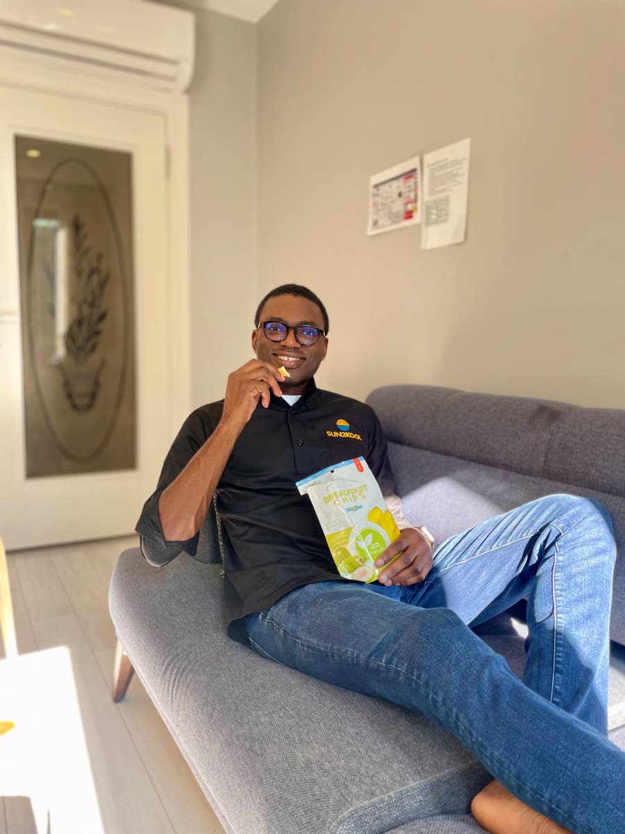 Javion Blake, founder of Jus Chill Foods Limited, chilling and enjoying his Jus Chill Breadfruit Chips.