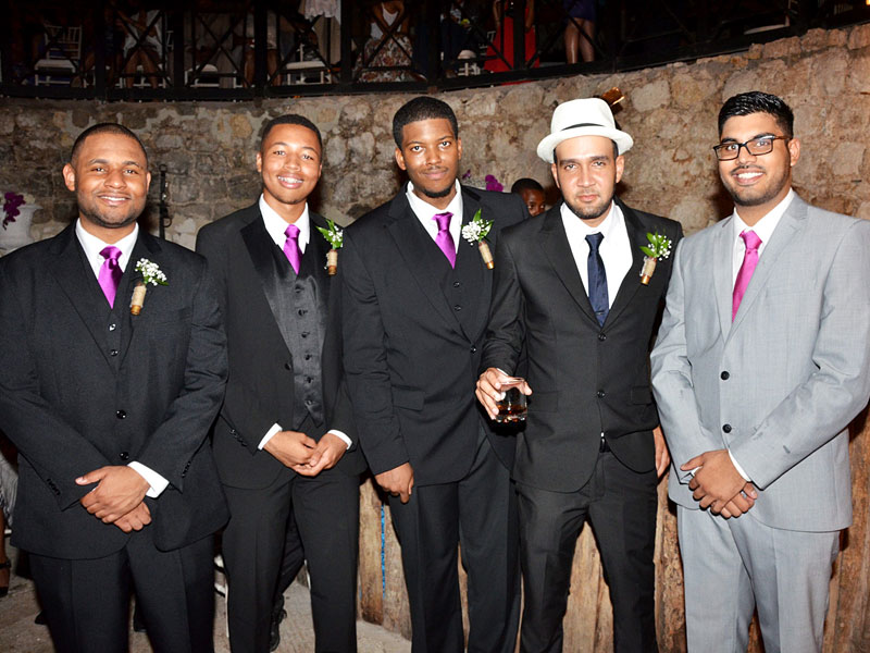 Groomsmen (from left) Seymour Knight Jr, brother of the bride; Richard Knight, brother; Ibrahim Chambers, Francis Segree and Hannan Tufail, brother of the groom.