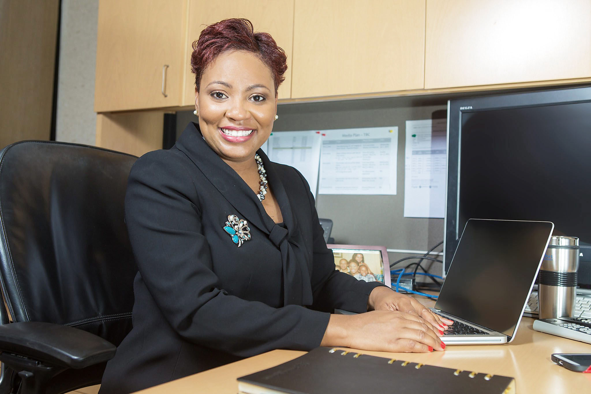 How is she is able to manage an office and a family, looking alert and smiling, she answers simply, "I'm sleep deprived".