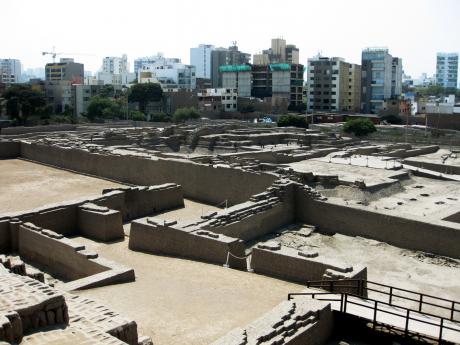 The temple, made of mud bricks with several rooms, catacombs, and squares where citizens played, is still under archaeological excavation and only about one-third of it remains, as much of its 18 hectares were reclaimed and is now covered by homes and apartment buildings in the quiet north of Miraflores.