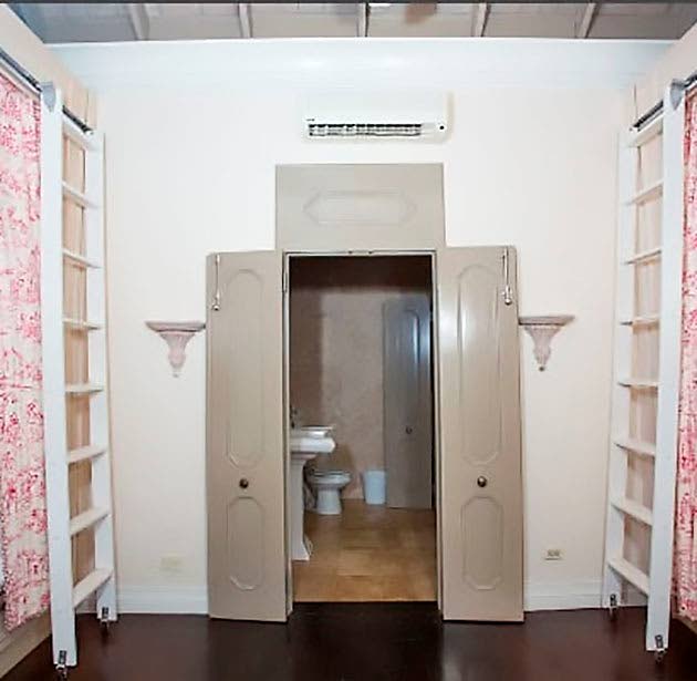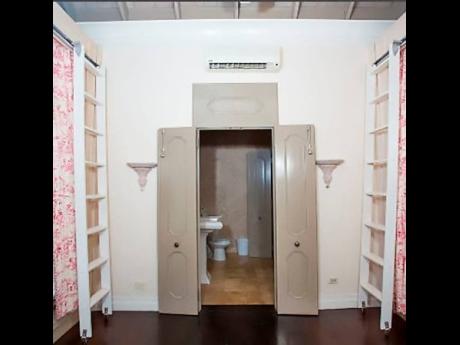 Other areas include, a dining room (with its wall of complete shelving), seating eight persons around its mahogany dining table. A TV room is nearby. A living room with its white upholstered wood furniture, makes an impressive statement; along with a lounge area and kitchen. Furniture is of traditional style, in keeping with old-world regality.
