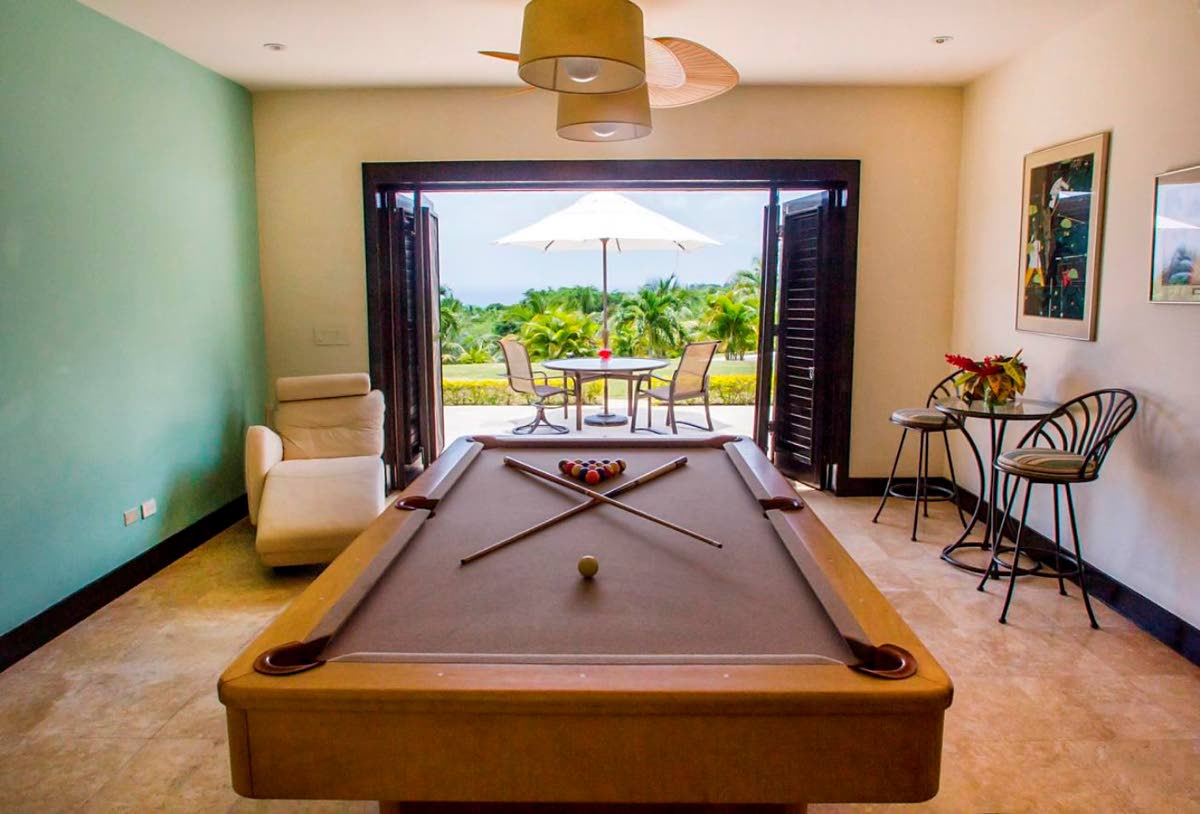 There is the fully equipped fitness room with steam room; games room with pool table; media room; study; chef’s kitchen with built-in appliances; and a granite wet bar which will have you mixing away. The main entertainment terrace provides access to the poolside lounge areas, while the others serve indoor areas.