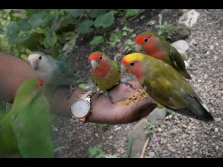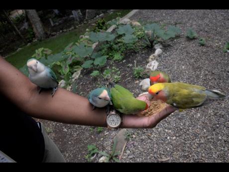 A few of the brightly coloured birs on the bird apiary found at Yaaman Adventure Park in Prospect Planatation, Ocho Rios.