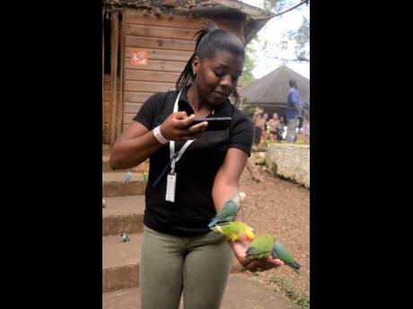 Vanessa tries to capture the beauty of the birds eating from her palm during a visit to Yaaman Adventure Park.