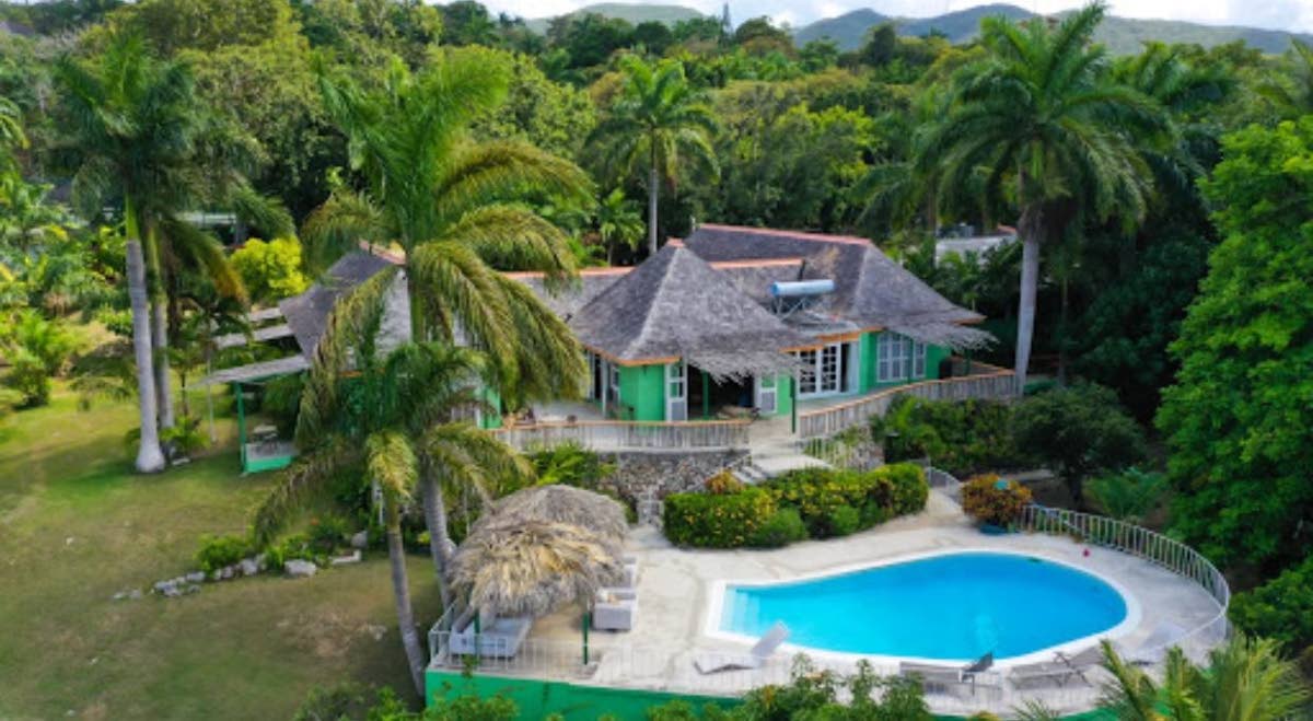This villa rises out of the fruited landscape on a two-acre hill, with bird’s-eye views of the 18-hole golf course and sea in the distance. It has an island-style, casually furnished design, with seven bedrooms, most with en-suite bathrooms. There are outdoor showers, dining and ‘open-ended’ living areas, a TV/family room, and kitchen with Corian countertops.