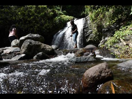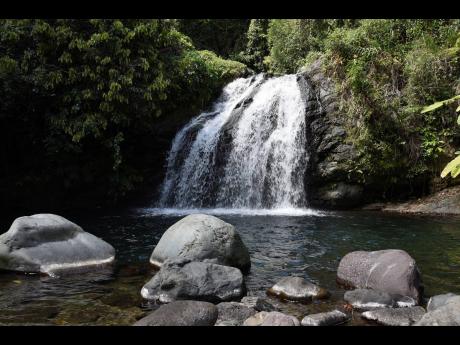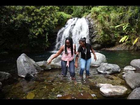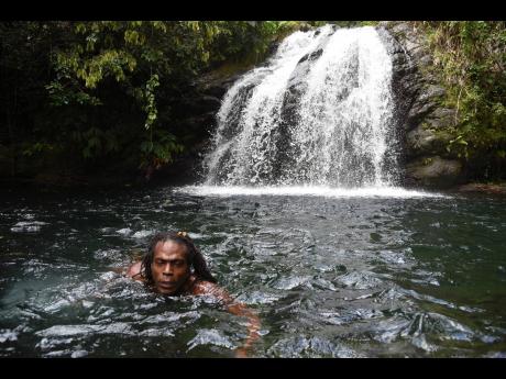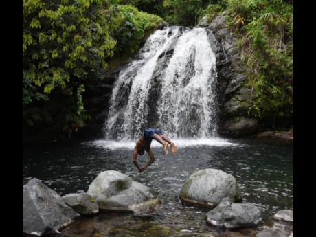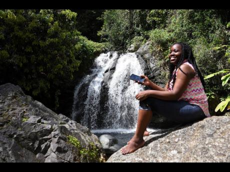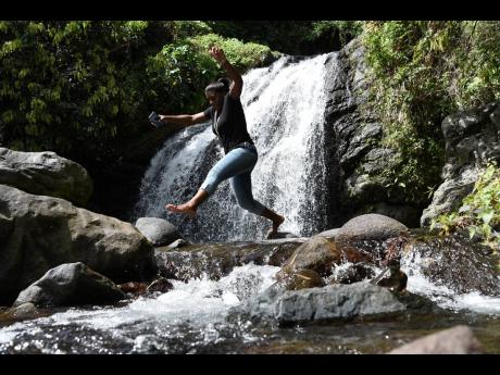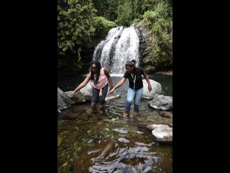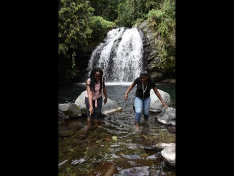 When we were ready to give up, a woman came out saying that she was the caretaker for the place and that it was family land. There, Sanya McLean gave us a bit of history and explained that it was privatised as she has a contract with the Blue Mountain tour, where tourists come to visit. The name of the waterfall is Black Bridge/Fish Dun Falls and as soon as you enter through the gate, the sprays from the fall were felt. She went on to explain that this was not the full power of the waterfall as there has not been much rain in the area.