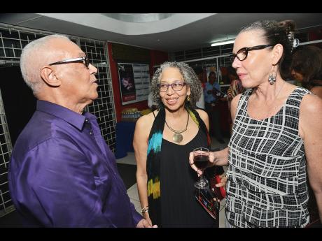 Sandra Minott-Phillips (right) chats with Bert Rose and Hillary Phillips at the National Dance Theatre Company’s 53rd Season of Dance, held at the Little Theatre, Tom Redcam Drive, last Friday.