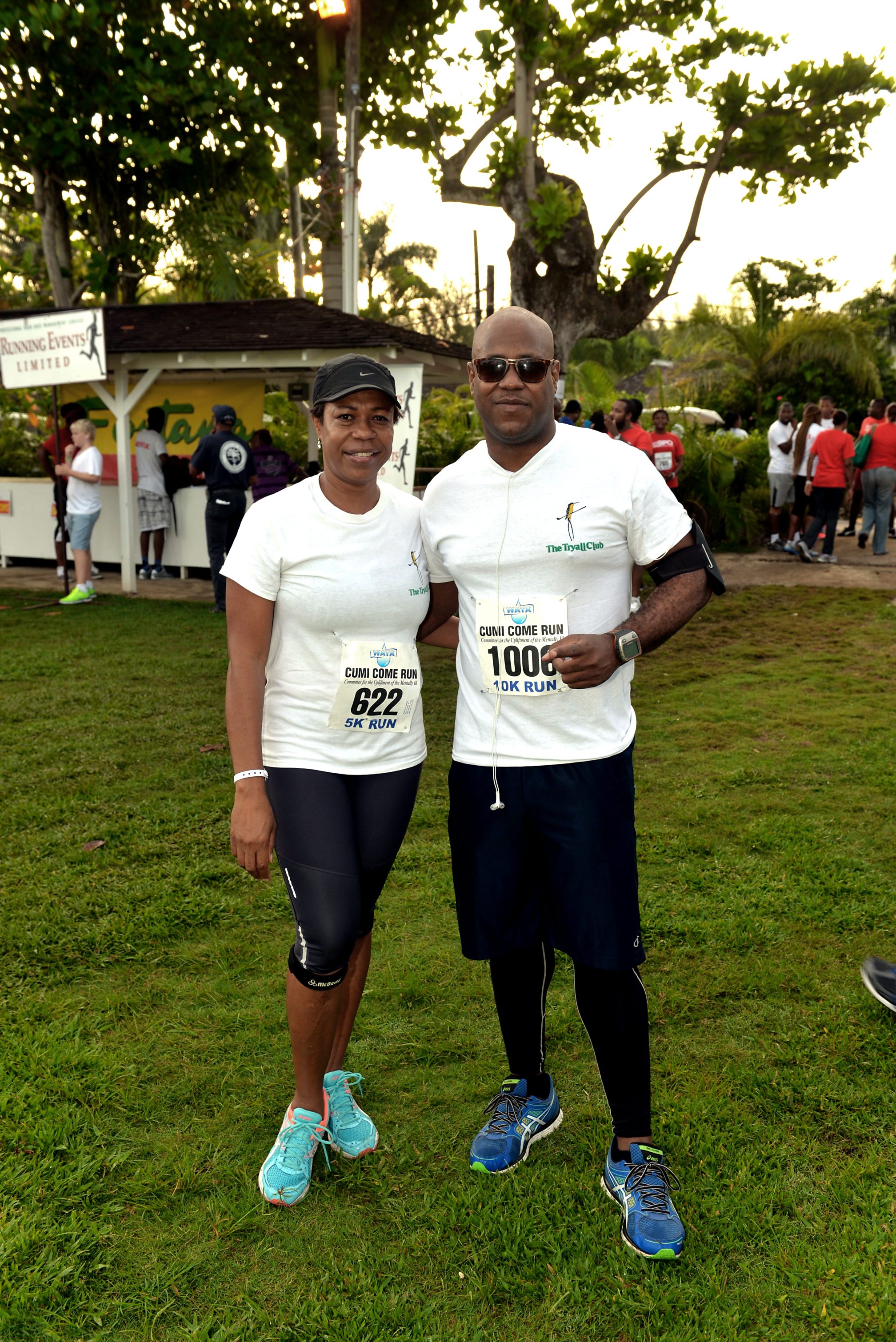 Tryalls Patricia Henry and her banking executive son Euwan McKolly who came in from Kingston to join her at the WATA CUMI Come Run say hi to our lens before the start of the race last Saturday.