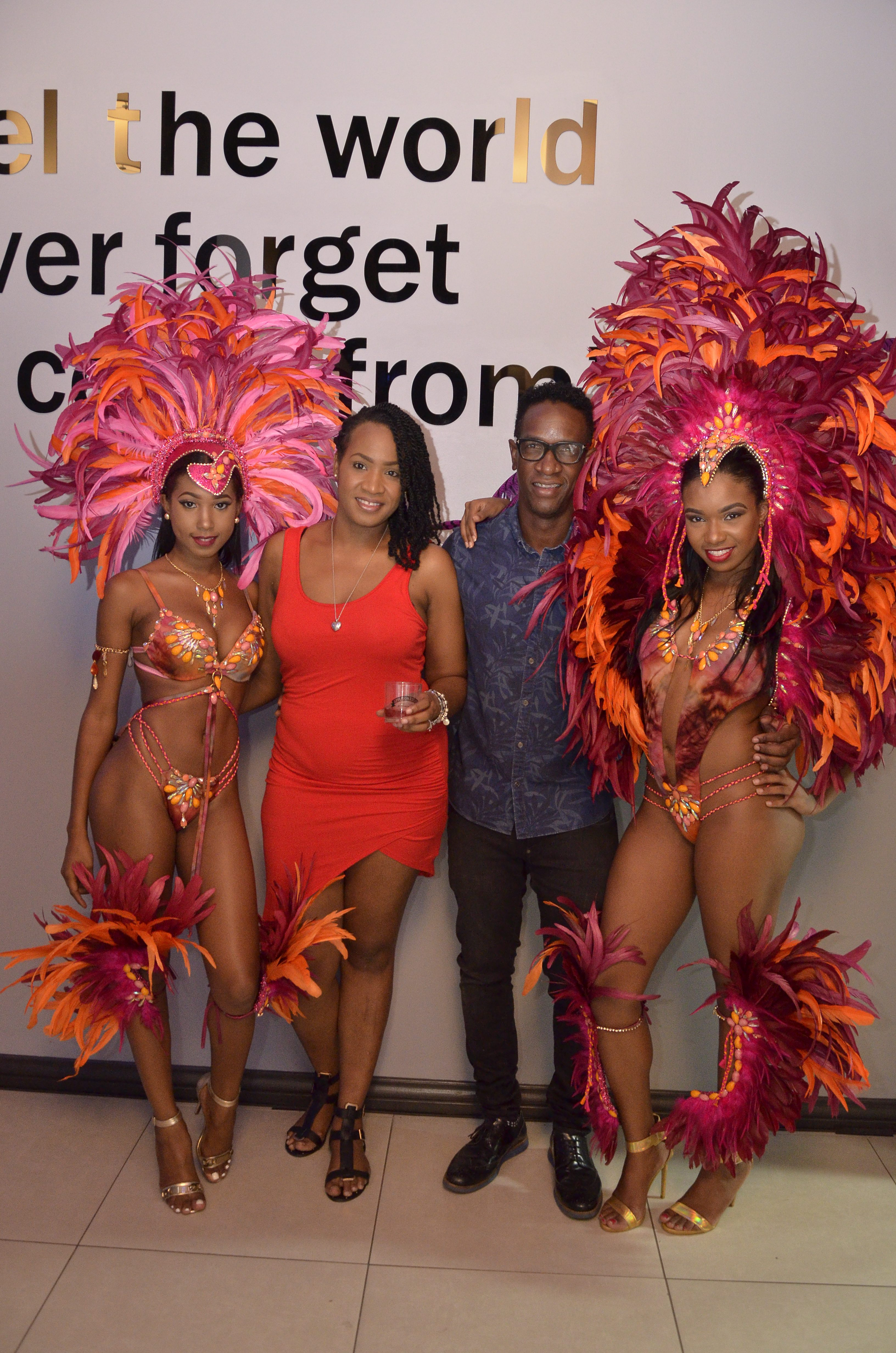 Flanked by models Kadesha Porter (left) and Donae Tucker (right) sporting the Appleton Estate Celebration 2016 Backline and Super Frontline costumes, respectively, Appleton Estate’s Brand Manager Erica Williams and Sunnation’s director Phillip Palmer shared our lens at the launch of Appleton Estate Sunnation Tabanca Tuesdays Launch.