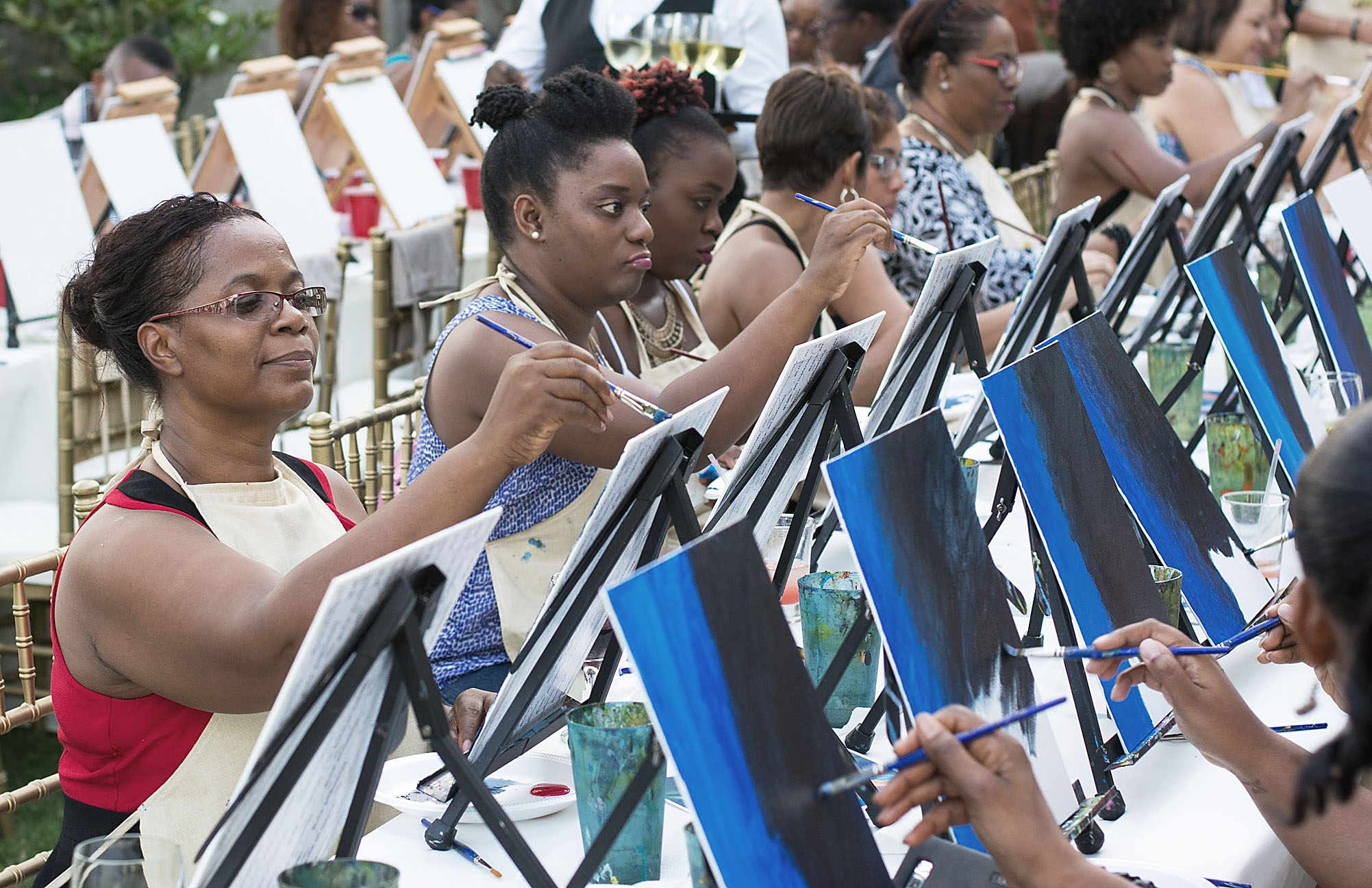 Just before putting their artistic capabilities to the test, these three beauties (from left), Bridgette Reid, Shari Tomlinson and her mother, Tania McDonald-Tomlinson, paused to take a quick photo.