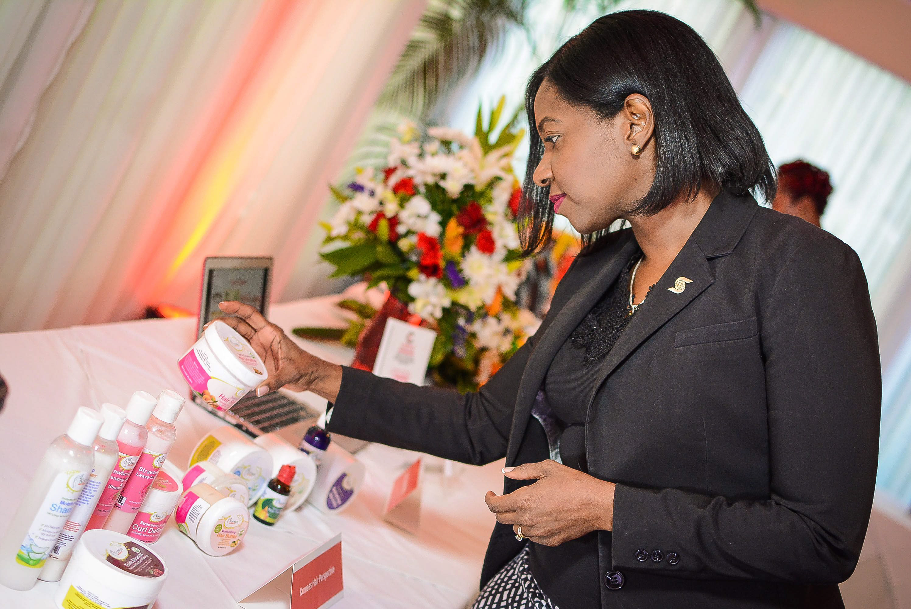 The top three performers of the Scotiabank Vision Achievers (from left): Janet Rankine-Henry of Complete Nutrition Care Diet Centre; Kemal Brown of Digita Global; Rushell Richards, senior make-up artist and representative of Your True Shade Cosmetics; celebrate with Kaysia Johnson-Vaughn, manager, marketing programmes at Scotiabank.