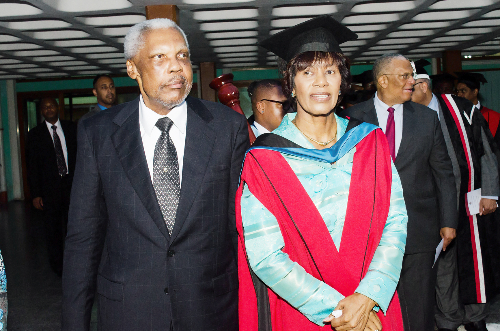 After the warm welcome, Simpson Miller was lauded by senior lecturer and head of Department of Literatures in English, Michael Bucknor, in his capacity as public orator for the proceedings. He praised her for being not only a politician extraordinaire, but a woman of elegance, kindness, tenacity, street smarts and charisma.