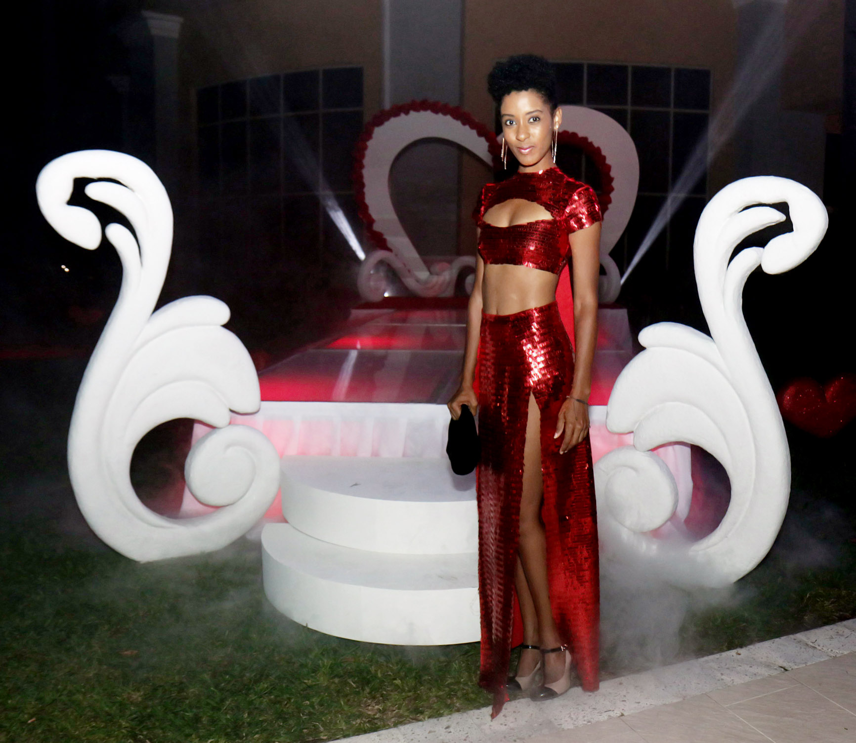 Ava-Marie Campbell turned heads in this very flattering red ensemble.