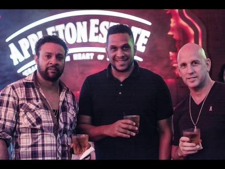 (From left) Organizers of the Great Bay Carnival, Kern Spencer, CEO, BOJ TV; Anne Marie Stewart, sales manager, ReadyTV, Donavon White, director of Tourism, shares a laugh with Professor Nuts, who will be one of the artistes to perform during the highly anticipated event.