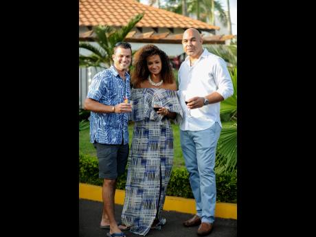 From left: This charming trio of Jeffrey Burke, Tamara Cox and Sadiq Miller embodied beach elegance at the reopening of the Puerto Seco Beach in St Ann recently.