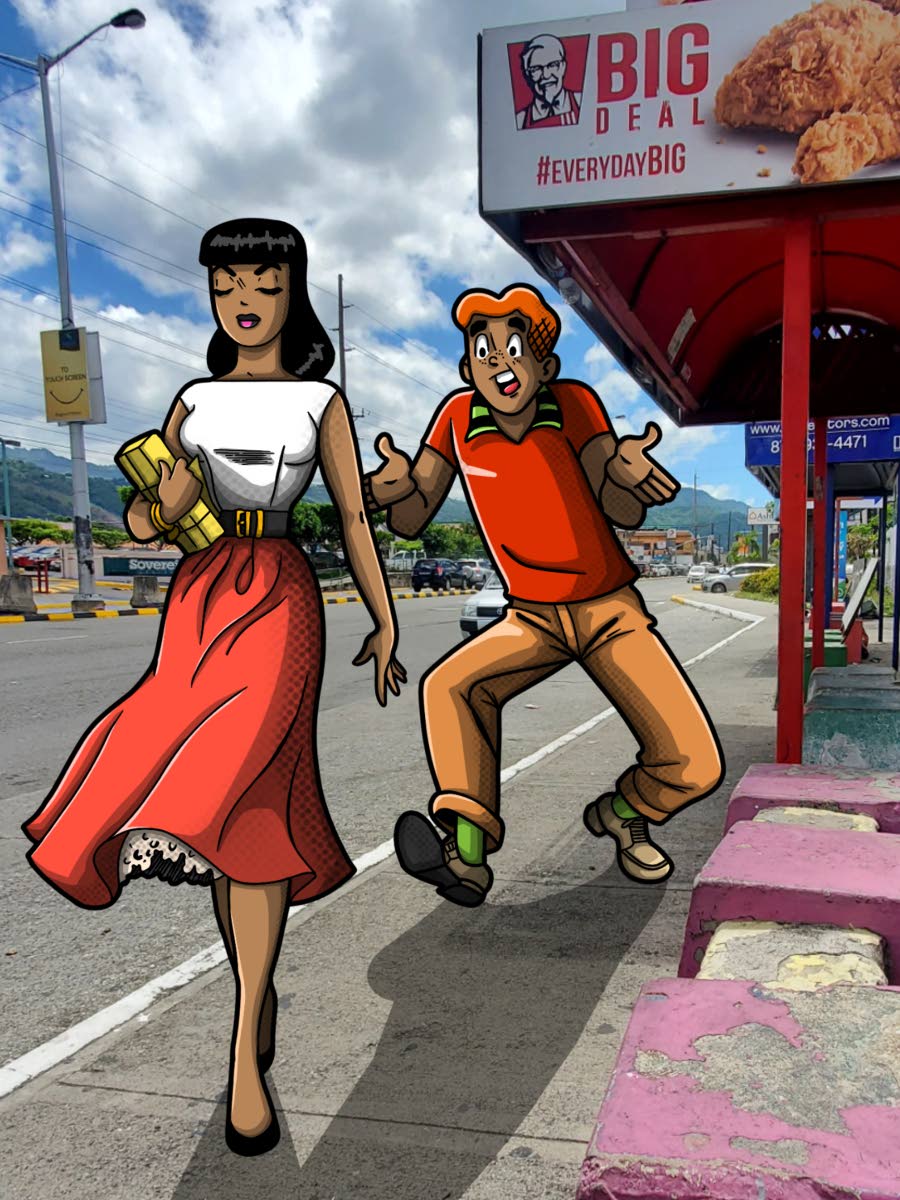 More recently, he has drawn a 3D mash-up of his beloved cartoon characters in real Jamaican locations. From Archie and Veronica walking in Liguanea to Fred Flintstone and family on the beach.