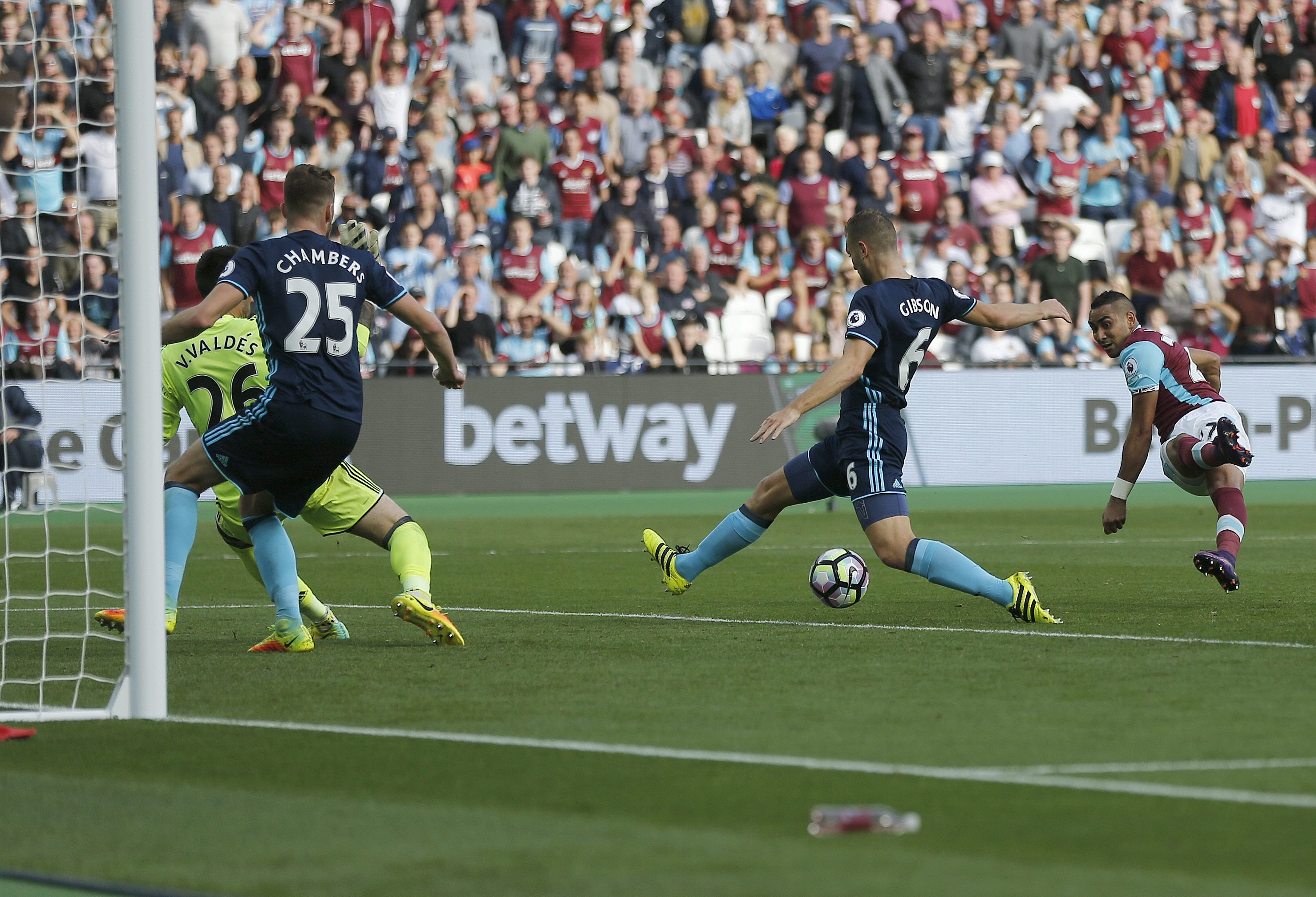 Payet lit up a drab game in the 57th minute at the Olympic Stadium, with home fans restless after Cristhian Stuani's header six minutes earlier. The France international dropped a shoulder to turn past Antonio Barragan on the left touchline, jinked around Marten de Roon, and skipped past Calum Chambers and Ben Gibson. After cutting through the defence with ease, Payet provided the perfect finish to score his first goal of the league.