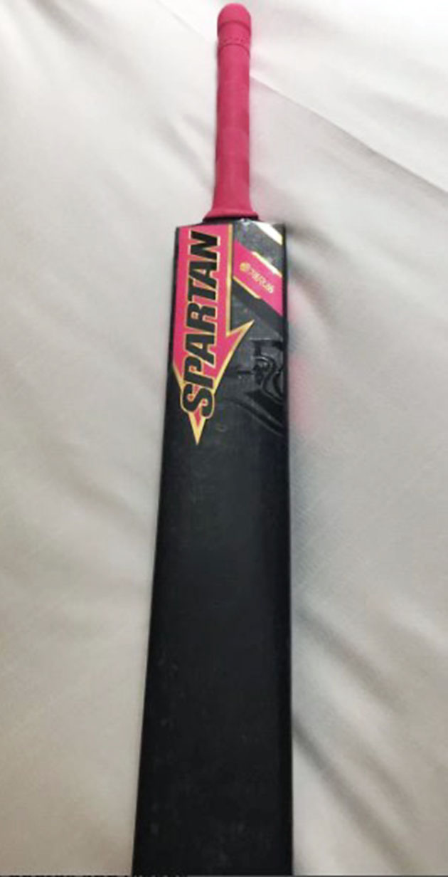 “A clear laminate cover has been applied to the bat which complies with regulations to ensure the ball discolouration does not occur again.
