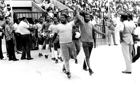 With that trophy in the bag, STATHS went to Jarrett Park to face an undefeated Rusea's High School team that included future Reggae Boyz Aaron Lawrence, 'Shortly' Malcolm, Michael Graham and Mark 'Hagler' Wilson for the first leg of the Olivier Shield. That leg ended 0-0 and when the teams came to the National Stadium, Cyrus popped up with the winner in the second half.