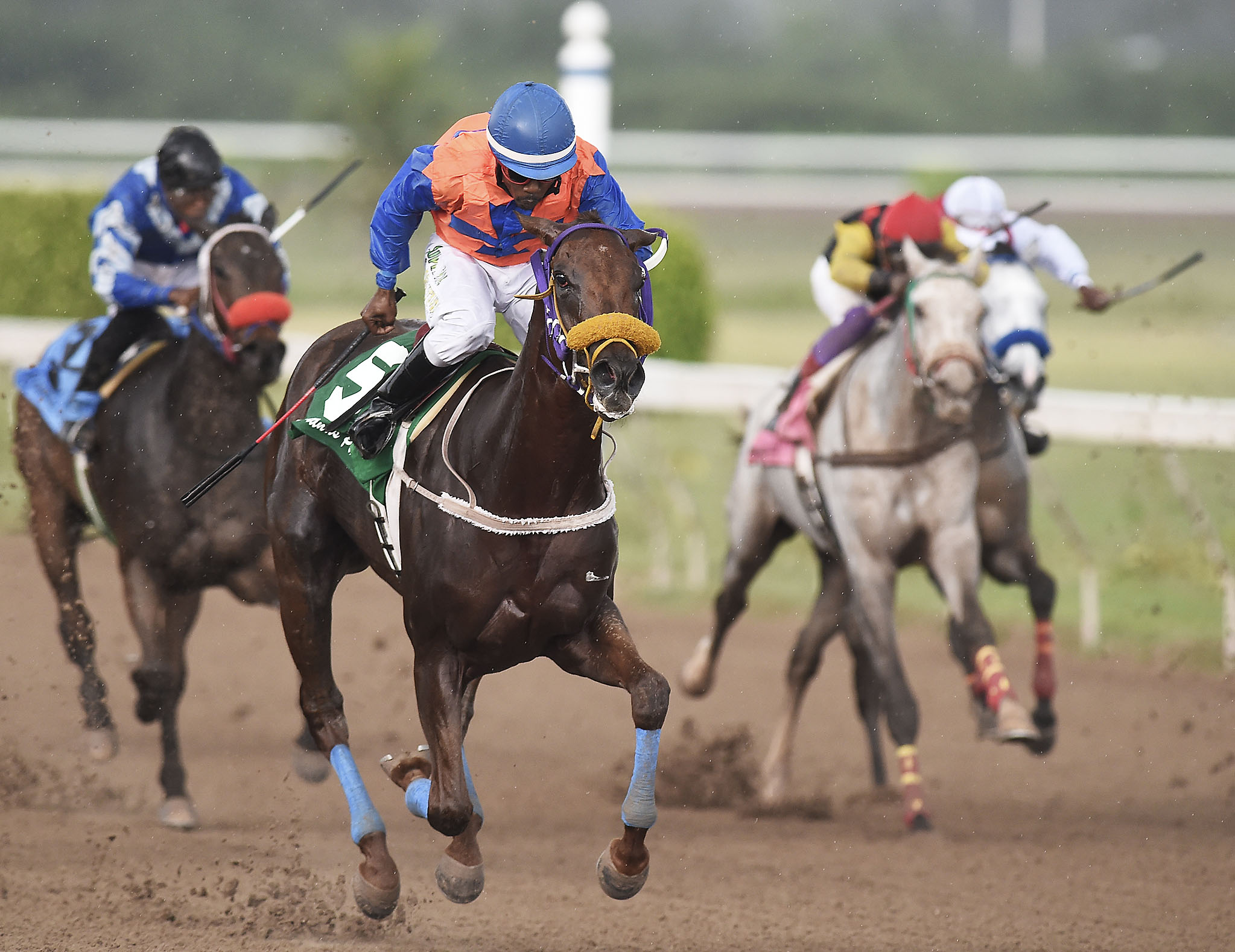 SIR LEYLAND HALL (Dane Nelson) capturing the tenth race at Caymanas Park on December 30.