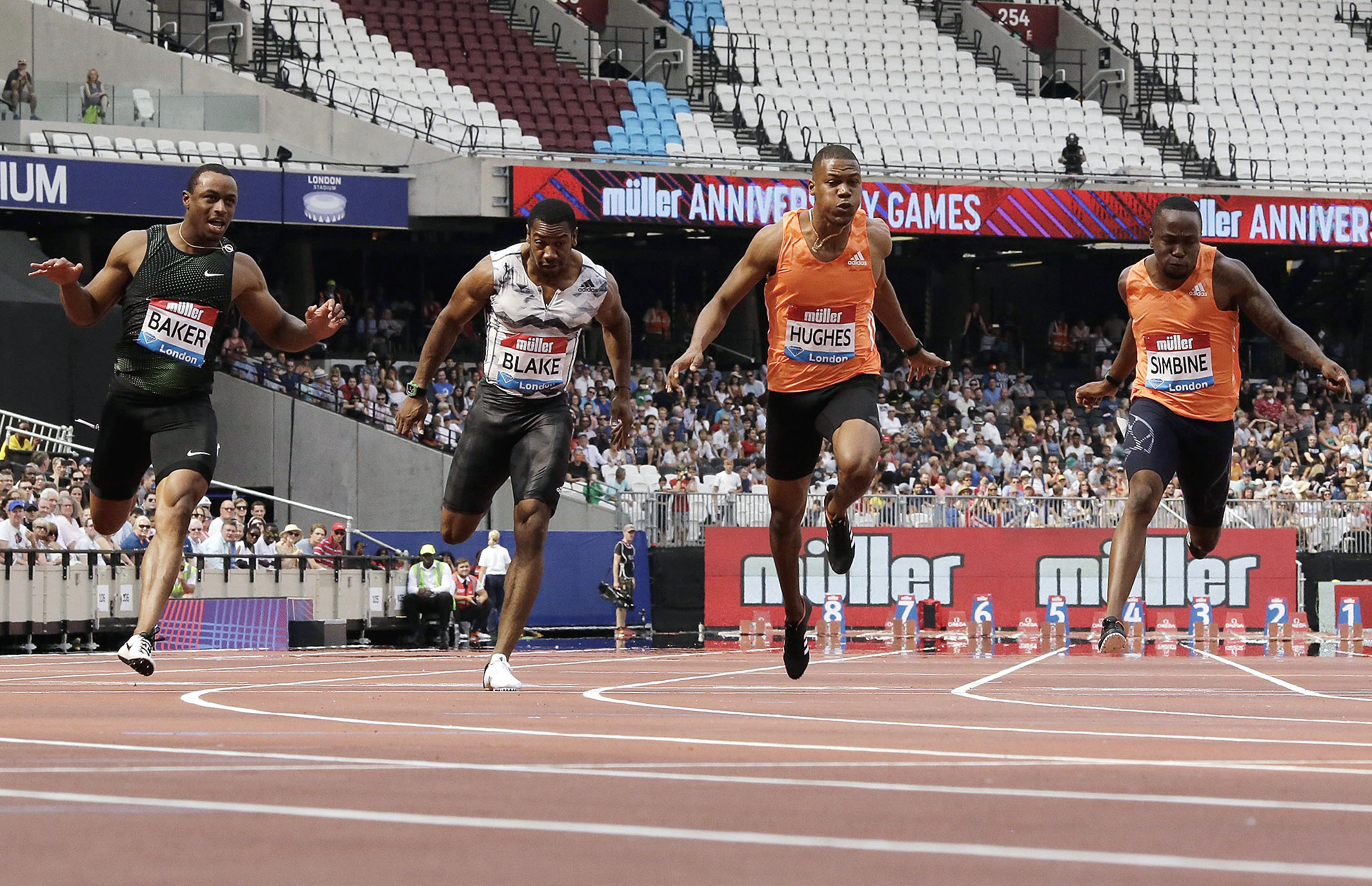 Blake had earlier produced his first sub-10 seconds clocking this season after a second place 9.99 seconds in his heat. American Ronnie Baker won the event in 9.90 ahead of Great Britain's Zharnel Hughes (9.93), with Akani Simbine of South Africa taking third in 9.94. National champion Tyquendo Tracy, who finished sixth in 9.98, had earlier posted a personal best 9.96 for a fourth-place finish in his heat.
