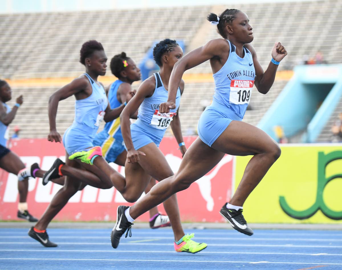 In the Under-17 event, it was a clean sweep of the top spots for Edwin Allen as Tina Clayton, 11.45, won ahead of her twin sister, Tia, who was second in 11.62. Serena Cole finished third in 11.70.