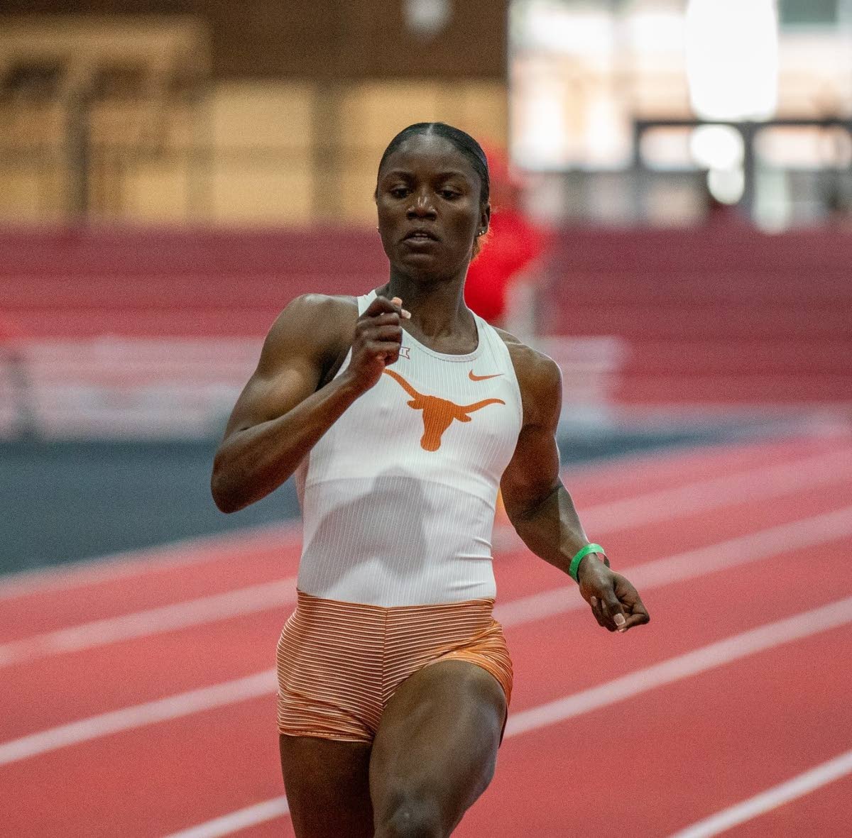 Competing in the sprint friendly 1500 metres altitude of Albuquerque, New Mexico in the United States, the St Lucian hit the line in 7.02 seconds, bedecked in the burnt orange of the University of Texas to lower her one-year-old NCAA record of 7.04.
