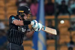 New Zealand’s Mark Chapman during the ICC Men’s Cricket World Cup match between New Zealand and Sri Lanka in Bengaluru, India on Thursday, November 9.