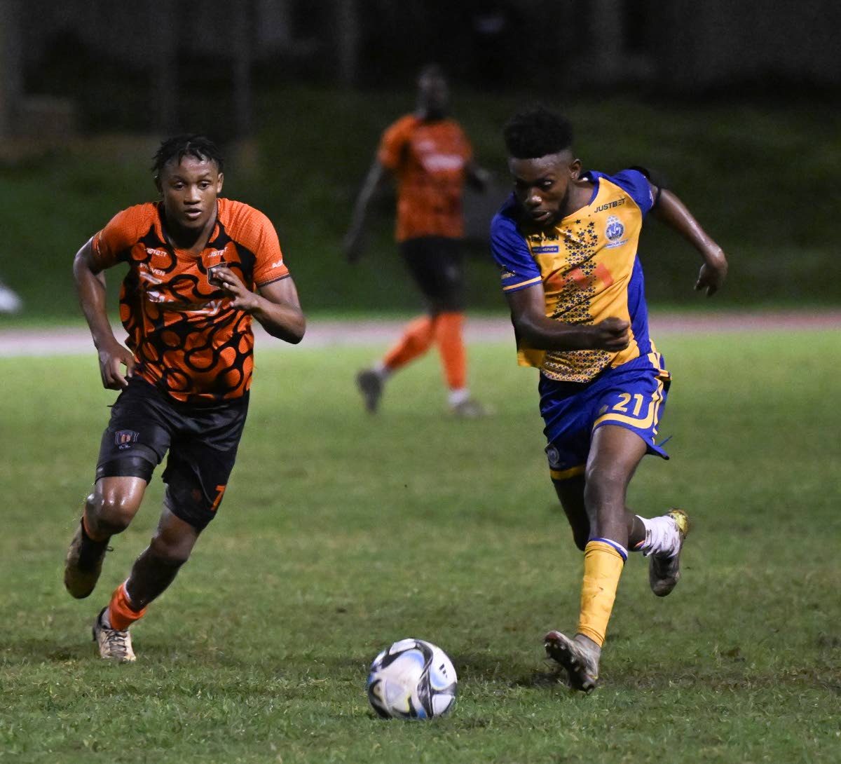 Tivoli Gardens’ Nickalia Fuller (left) goes in chase of Harbour View’s Odorlando Harding during their Jamaica Premier League clash at Stadium East on Sunday. Harbour View were thumped 6-0 in the encounter.