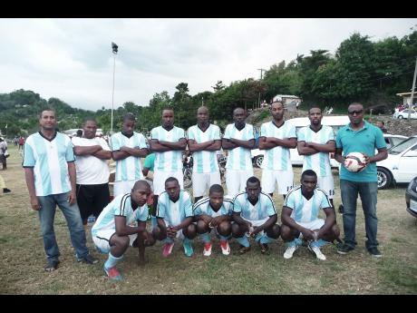 Members of the Lucea police football squad pose for Western Focus' lens ahead of their football game at the Steve 'Shorty' Malcolm/Denton 'Melwood' Samuels football competition on Sunday, at the Central field in Lucea.