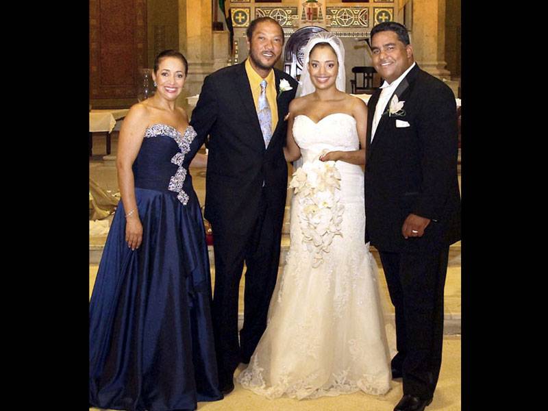 Among those out sharing in the joyous occasion, were mother of the bride, the fabulous Roseann Delfosse Newman; parents of the groom, Kenneth and Vinnette Brown; the bride's aunt, Betty Delfosse-Ingleton, who jetted in from Zanzibar; the bride's maternal grandmother, the very charming Elaine Delfosse; her sibling Cynthia Evelyn and sons Kenneth and Edward Evelyn; her sister, the beautiful Nagina Newman; uncle Donovan Delfosse and wife Dee-Dee, in from Canada; Carol Delfosse; cousins and friends Sahai Ingleton, who jetted in from Florida for the occasion; and the lovely Sulan Smith, her dad, famed musician Earl 'Chinna' Smith.