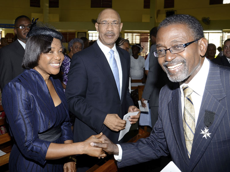 Victor Rhone (right), chairman of the St John Council of Jamaica, greets Lady Allen and Sir Patrick Allen, governor general of Jamaica, after the most Venerable Order of St John of Jerusalem National Council for Jamaica annual commemoration service at St Luke's Church in Kingston on Sunday, June 26. - Rudolph Brown/Photographer