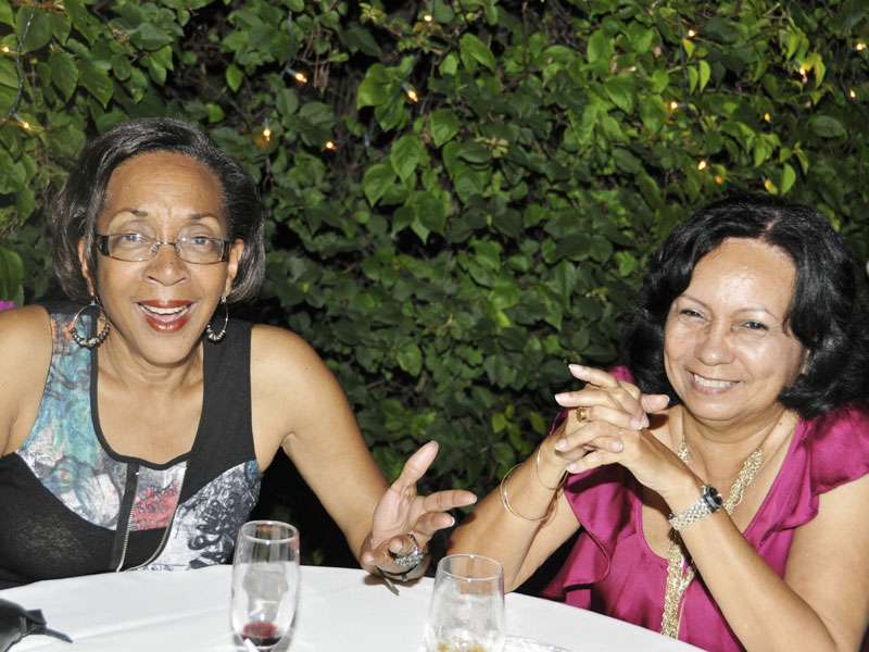 Vintoria Bernard (right), new president of the ICAJ, and tax guru Ethlyn Norton-Coke are in their own worlds at the party.