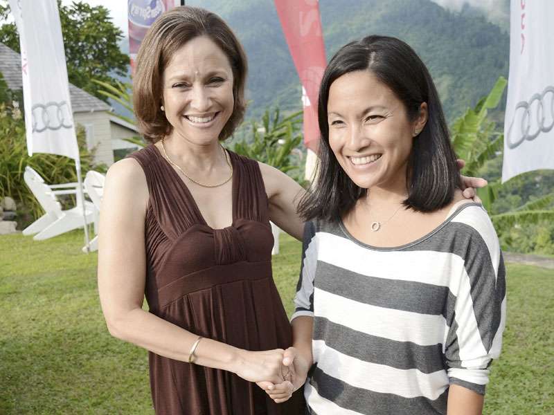 Mitta Rousseau (left) and William Mahfood enjoy the scenery at the beautiful Strawberry Hill Hotel and Spa during the ATL Strawberry Hill Backgammon Tournament on Sunday, November 6. - Contributed