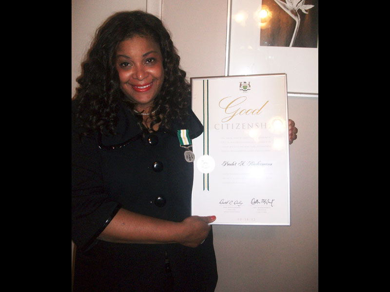 Jamaican Paulet Biedermann was awarded Canada's Queen Elizabeth Diamond Jubilee Medal recently in Ontario for more than 20 years of humanitarian service in that country.