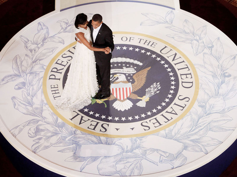 The first family will lead a parade of clanging bands, elaborate floats and marchers, including costumed dancers, prancing horses and military units, down Pennsylvania Avenue. The president will dance with the first lady, whose dress seems destined to be most anticipated fashion statement of the second Obama administration.