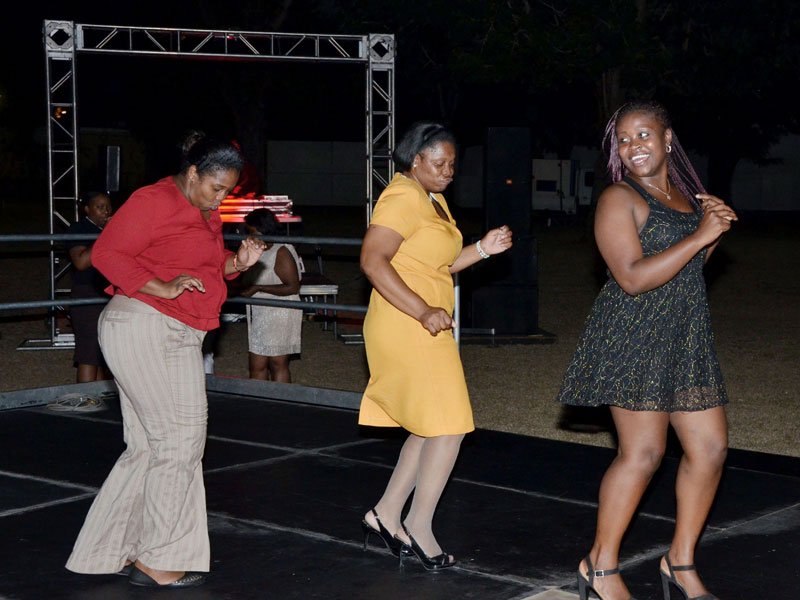 Lounge chairs and love seats with coffee tables spread across the lush property, accented by bistro tables, was how the female head of Government paid tribute to members of the fourth estate.