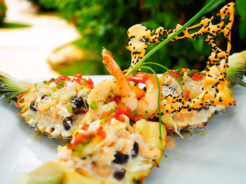 Ballysingh's tropical shrimp salad in pineapple