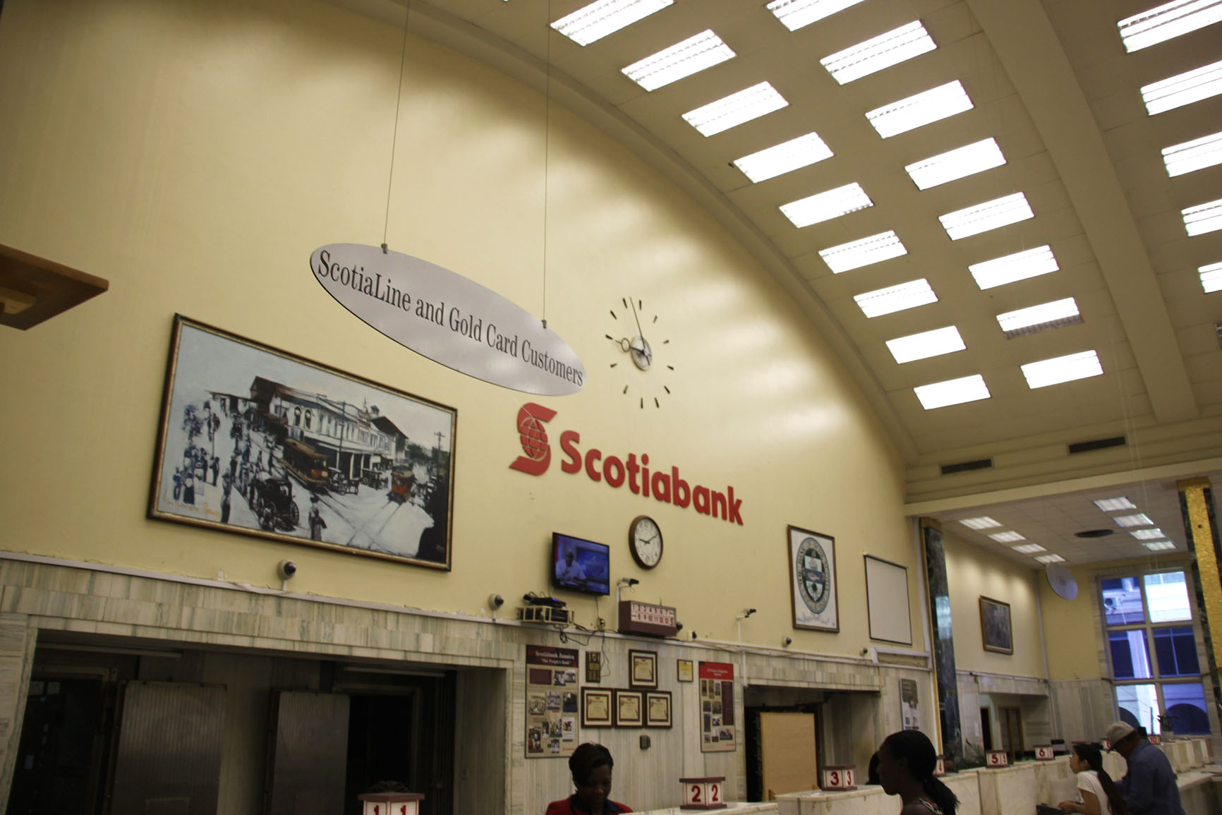 Downtown Kingston was the choice location for the first branch in 1889. It was the hub of Jamaica's commercial activities. Scotiabank rented the downstairs of a building at the corner of Church and Port Royal streets before moving to the present location. Housed in the Spanish Colonial building, it was opened in 1909 and heralded as a "pioneer in post-earthquake reconstruction".