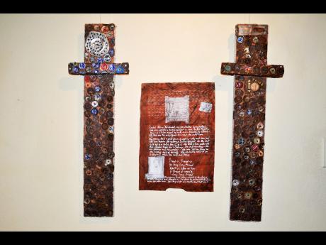 The accomplished vice-president of The Poetry Society of Jamaica said he also incorporated his love for the art form into his work. This was evident as most of the pieces were creatively draped with the use of words and objects.