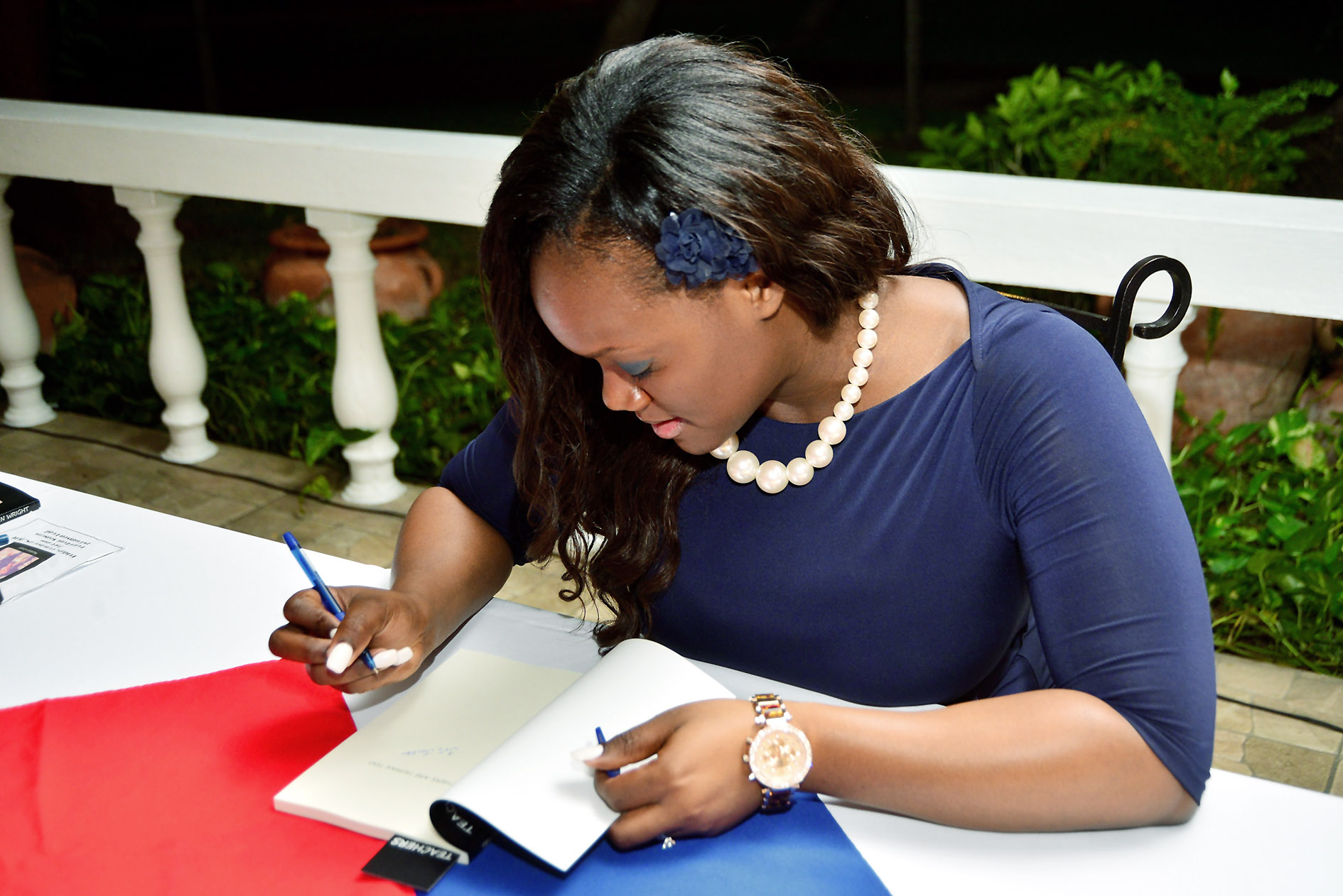 Wright then donated copies to the National Library, and then it was time for signing as guests hurriedly purchased their personal copies as well as a few of her previous book, Beautiful Ebony, for her to sign while grabbing cocktails.