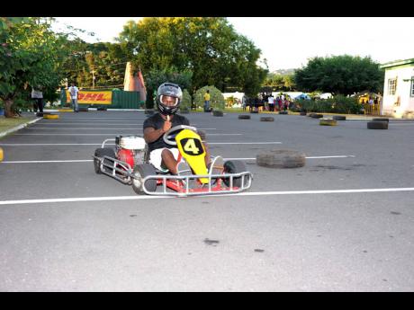 A young driver takes a turn at the steering of a go-kart during the December 2014 staging of Immaculate High School’s fair, courtesy of the school’s JAA Junior Club.