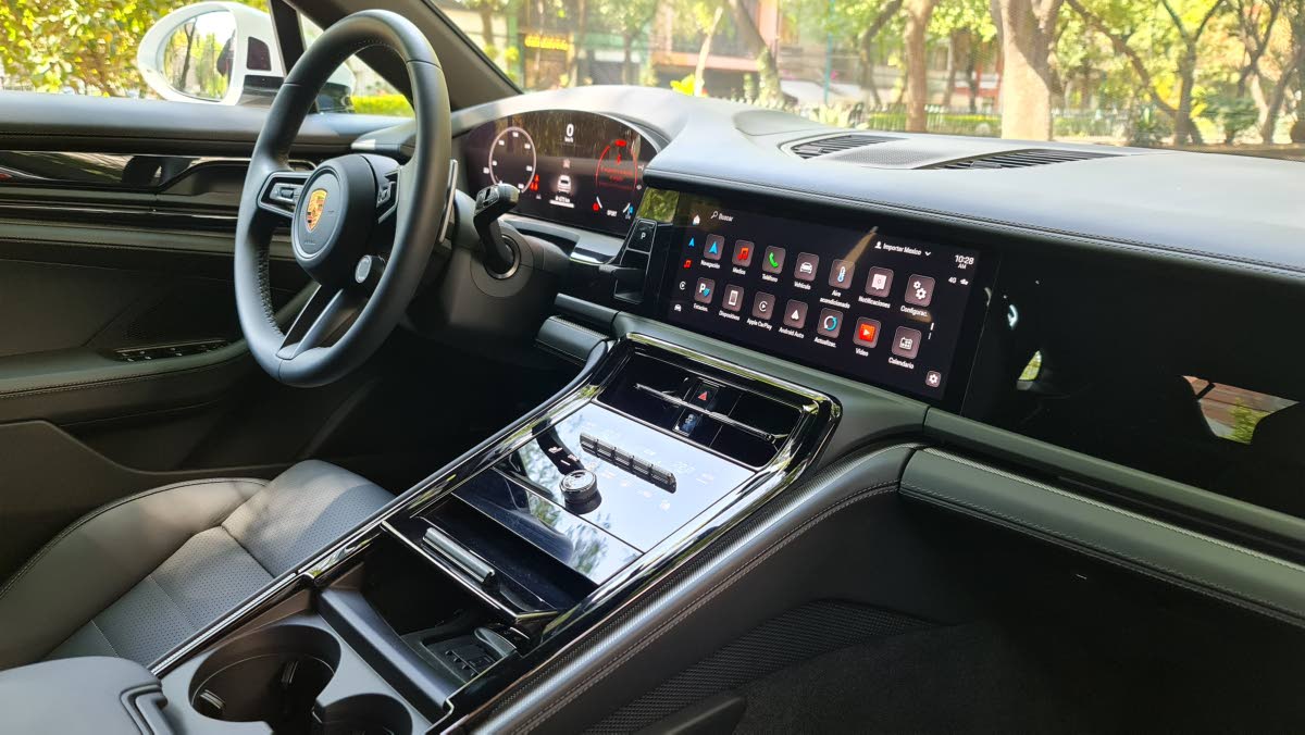 The Porsche Communication Management (PCM) system stands out for its seamless app integration. For instance, you can navigate using the intuitive native map while simultaneously playing music from the media player. The map conveniently relocates to one of the screens within the digital cluster when switching applications.