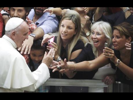 Pope Francis is cheered by faithful as he arrives in the Paul VI hall at the Vatican, yesterday. Pope Francis declared yesterday that divorced Catholics who remarry, as well as their children, deserve better treatment from the church, warning pastors against treating these couples as if they were excommunicated.