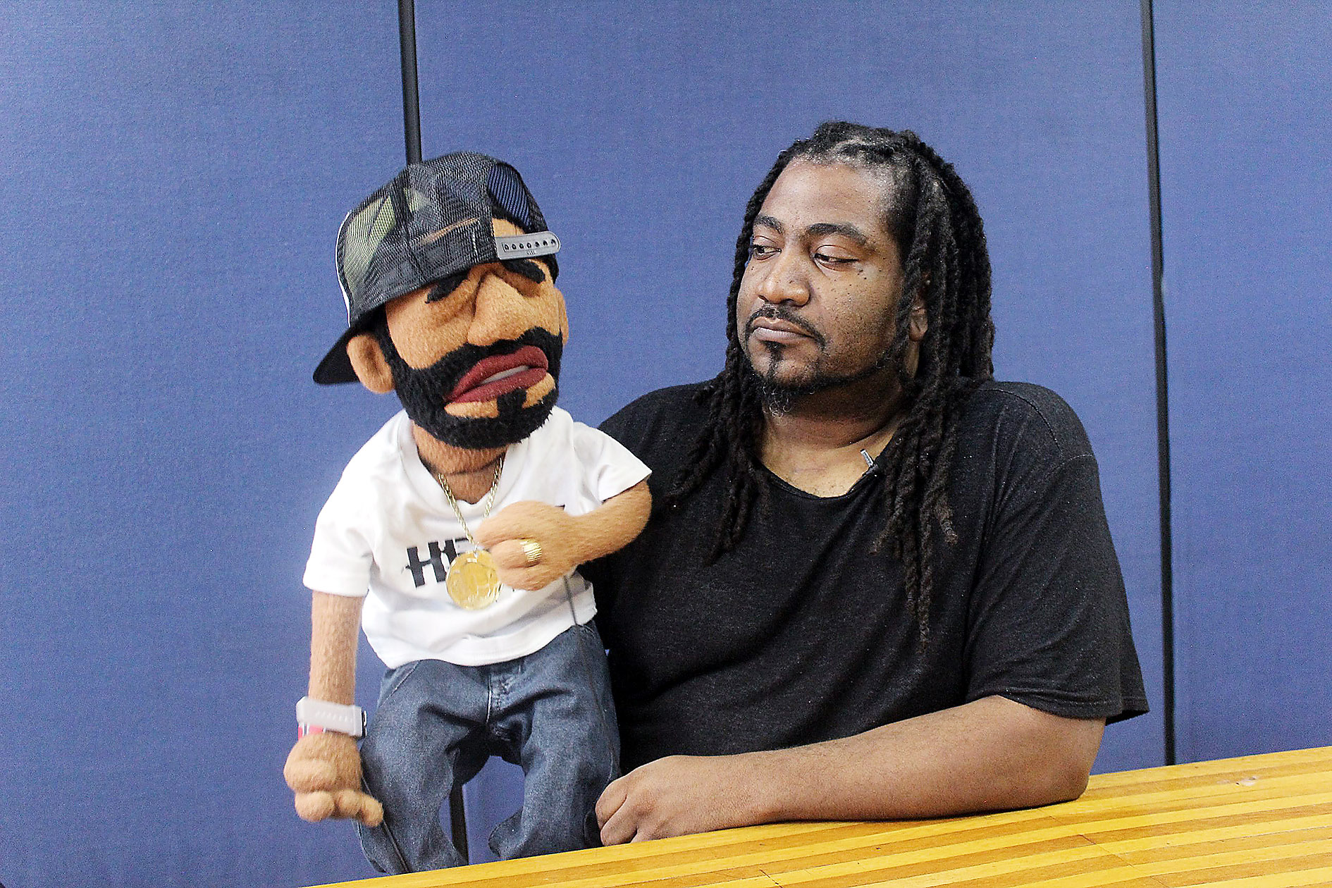 He makes it his duty to explain first that he is not a ventriloquist, and his puppet show does not require that skill.