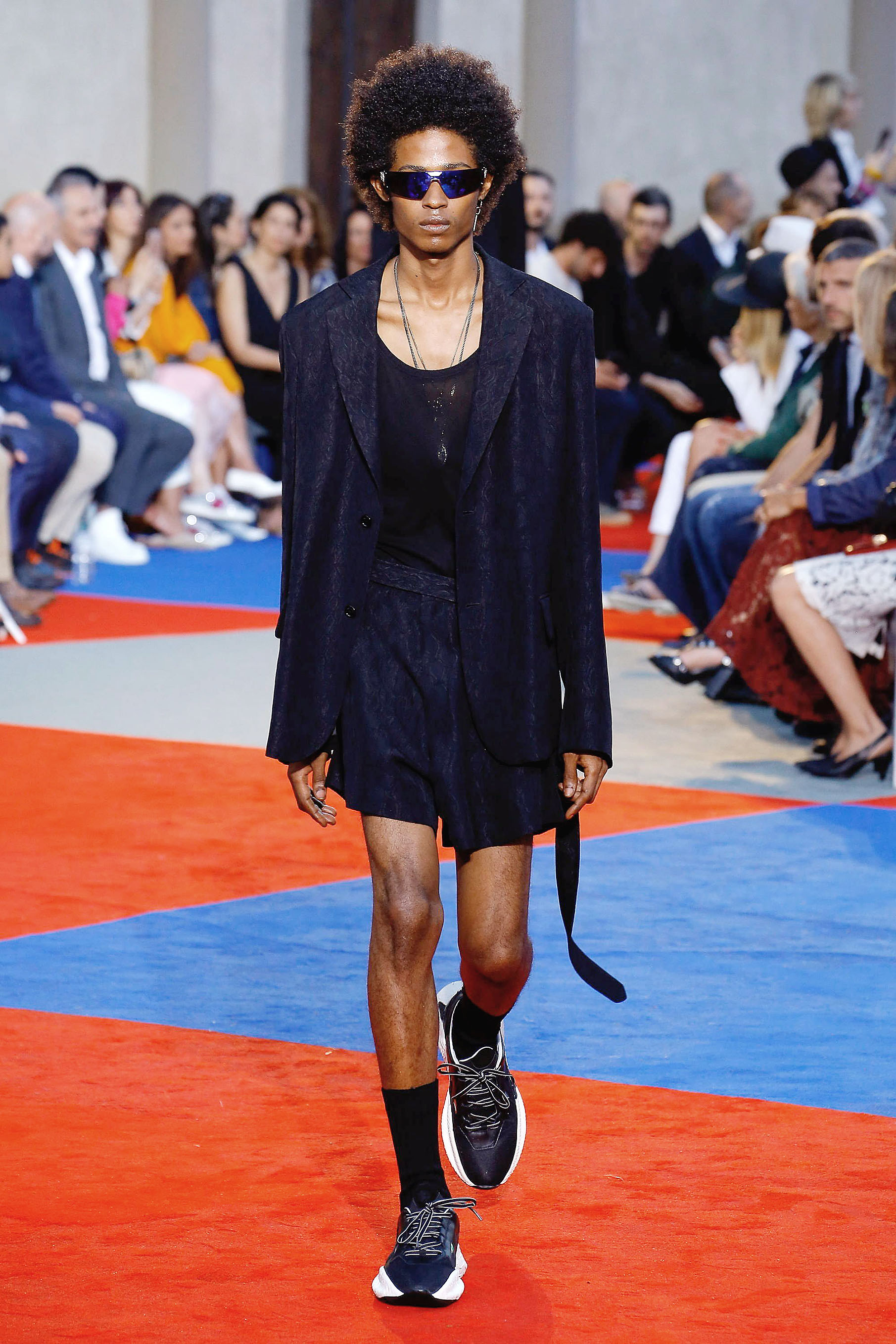 Back in Milan, Brown continued his glamorous rampage for Zegna's sportswear collection of luxury tailored track pants, jackets, mesh leather bombers, dreamt up by creative director Alessandro Sartori. Next on his agenda was an appearance for Neil Barrett - a preferred label for global Hollywood trendsetters such as Orlando Bloom. Barrett delivered a sea- and surf-faring-themed collection which mixed Barrett's usual colour palette of sand, beige, navy, grey and black with bright colours associated with surfwear.