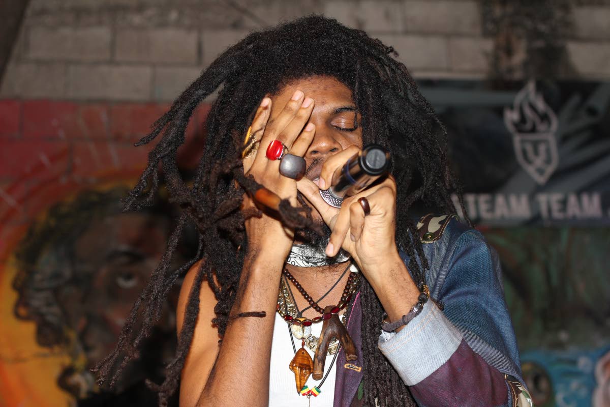 Selector-performer Yaadcore gives a hardcore presentation of culturally conscious lyrics at SR Live, held at the Fyah Garden last Saturday, February 22.